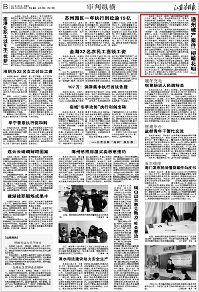 江蘇法制報截圖 近日“南通瑞東會計師事務(wù)所”的名字,不斷出現(xiàn)在《新華網(wǎng)》《江蘇法制報》的報道之中。一個小會所名字出現(xiàn)到主流新聞媒體中,實屬罕見。這要從我所承辦的一起破產(chǎn)案件說起。 2020年8月24日,通州區(qū)人民法院受理南通某瑞公司“執(zhí)轉(zhuǎn)破”一案,并指定南通瑞東會計師事務(wù)所擔(dān)任管理人。這是一個典型的企業(yè)無資產(chǎn)、無賬冊資料、無經(jīng)營場所的三無企業(yè),債權(quán)人看不到任何受償希望的破產(chǎn)案件。 南通瑞東會計師事務(wù)所由多名專業(yè)人員組成的清算組,主任會計師吳林海親自帶隊。在承辦法院的指導(dǎo)下,管理人從不動產(chǎn)登記中心到車管所,再到銀行,四處奔波,全方位開展資產(chǎn)調(diào)查工作,可惜仍未能發(fā)現(xiàn)有價值的財產(chǎn)信息。管理人團隊苦苦尋思突破口,仔細尋找蛛絲馬跡,終于在稅務(wù)局申報表和市場監(jiān)督部門的企業(yè)檔案中發(fā)現(xiàn)了有益線索。原來債務(wù)人公司季某等三股東出資為認繳制,全國工商企業(yè)信息查詢網(wǎng)顯示,三股東均未實際出資。根據(jù)企業(yè)進入破產(chǎn)程序股東認繳出資加速到期的法律規(guī)定,讓這起案件柳暗花明! 2020年10月22日,管理人一紙訴狀,將三股東告上法庭在申請訴訟保全后,債務(wù)人企業(yè)無力提供訴訟保全保證保險金的情況下管理人毅然決然決定有管理人機構(gòu)自己先行墊付,申請法院進行了保全保全。終于,身兼企業(yè)法定代表人、股東的季某出面了,但未發(fā)現(xiàn)他有履行能力。另外兩名不參與公司經(jīng)營的股東湯某、尹某一臉“委屈”:“都是季某惹的禍,公司不破產(chǎn),再多的錢砸下去都是‘無底洞’。但是法律是公正的,2020年12月21日,通州區(qū)人民法院判決三股東必須承擔(dān)出資義務(wù)。管理人負責(zé)人告知被告“股東出資是你們應(yīng)當(dāng)履行的義務(wù),拿不到錢的債權(quán)人才是真正的受害者。”迫于法律的威力,2020年12月22日,“想通了”的湯某、尹某向管理人賬戶打來了20萬元,最終, 7名打工人員全額拿回血汗錢! “破產(chǎn)管理人專業(yè)、敬業(yè)和高效的工作,使我們的債權(quán)得到了全額受償,好高興……”1月29日,破產(chǎn)企業(yè)南通某瑞公司的債權(quán)人楊某等向管理人南通瑞東會計師事務(wù)所寄來感謝信,對管理人的辛勤付出表示由衷的感謝。 為債權(quán)人楊某代理執(zhí)行的律師感嘆:“破產(chǎn)案件中債權(quán)全額受償,我執(zhí)業(yè)二十多年來從沒見過。” 盡職、盡力、盡心、盡我所能,維護債權(quán)人的利益、維護法律的權(quán)威這是南通瑞東會計師事務(wù)所作為破產(chǎn)管理人一貫堅持的基本原則。所承辦案件得到債權(quán)人的認可,得到法院的肯定,這是管理人的最大榮譽。 |